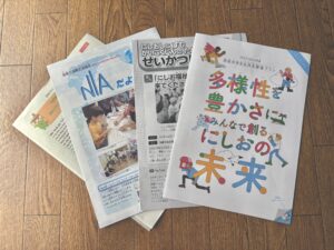 市からの情報発信として、「にしおしに すむ がいこくじんの ための せいかつじょうほう」が配布されています。イベント、福祉医療制度のお知らせ、今月の税金、今月の市民相談など、その時最低限必要な情報が、やさしい日本語で書かれています。情報のたくさん詰まった広報誌では、必要な情報を読み取ることは難しいと思われますが、情報を減らすことで必要な情報が届くこともあると思いました。